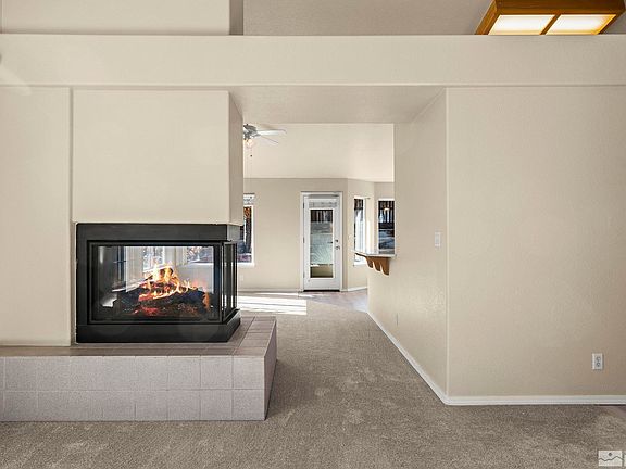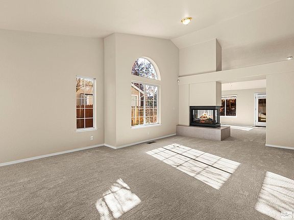 Lovely Northwest Reno home has new carpet and newly installed vinyl plank flooring throughout. The home has a freshly painted interior-vaulted ceilings, three-sided fireplace connects family and living rooms, eat-in kitchen nook-solid surface counters, central air conditioning-The yard has mature bushes and just needs grass or your finishing touches! CLA for more details!, Construction on the adjacent lot is being done by D.R. Horton. It will be duplexes-tri-plex's and 4-plex's per the City of Reno. Backer dead ends at that end of the street and is supposed to stay an emergency access road. However, buyer is to verify all details to their satisfaction. We have nothing in writing -- should be approved after the first of the year per builder/city.