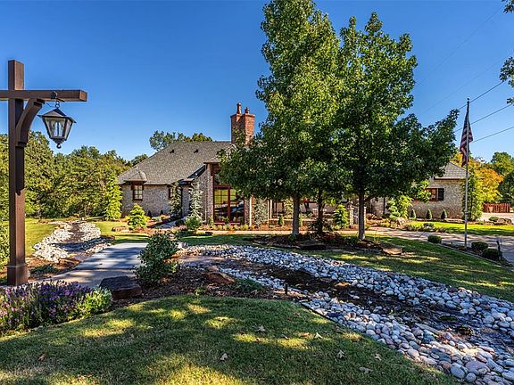 Rare find-stunning Jack Arnold Design! East Edmond 4 acre lot mol! Exquisite quality built by Steve Trumbly loaded w/solid core doors, wood floors, granite, wood beam ceilings & stunning woodwork! 4 beds w/master bed down & 3 beds up. Peaceful water feature & beautiful landscaping! Handsome study w/wood floors. Formal living & dining w/wood floors, cathedral wood beam ceiling, bookcases & see thru fireplace! Gourmet kitchen w/6 burner Viking gas range w/double ovens, sub zero fridge, island, butler's pantry, ice maker, granite, walk-in pantry, stainless appliances & breakfast bar. Family room open to kitchen w/wood floors, built-ins, wood beam ceiling & fireplace! Spacious master w/fresh carpet, door to patio, wood beam ceiling & bath w/shower, whirlpool tub, walk-in, makeup vanity & 2 vanities. Bonus room up w/fresh carpet. Much desired East facing paito and fabulous concrete pool w/water feature! Patio w/fireplace! Full house generator! Home was originally built with space for elevatortor be added if needed. Seller recently re-landscaped the majority of the front yard and replaced bridge over the water feature. 40'x40' shop holds 6 cars w/10’ ceilings, entire building w/HVAC & fully finished upstairs & security system. Upstairs bonus room has great potential for apartment. 2 wells-no water bill! This home is immaculate and extremely well maintained! Pride in ownership shows here!!!