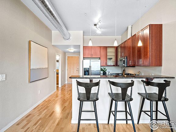Experience the essence of refined urban living in this Highland residence. This property makes a successful rental and has 3 years of rental history to back it! Perfectly situated on the top floor, the interior features soaring ceilings and abundant natural light. The expansive patio serves as a private sanctuary, offering sweeping views of the city skyline - a perfect setting for elegant entertaining or serene moments of relaxation. A spacious layout has been thoughtfully designed with ample storage options. The living area opens into a modern kitchen gleaming with stainless steel appliances and a breakfast bar with seating. A versatile flex space offers an ideal setting for a home office or art studio. The generously sized bedroom with a custom walk-in closet and a large full bath provide an exceptional living experience. A washer and dryer set is an added amenity. Enjoy the convenience of a covered and deeded parking space in a secured lot. A central location offers proximity to Commons and Confluence parks, steps from Highland Bridge to get to Ball Arena, Coors Field, Empower Field, a hop skip to Union Station, and surrounded by vibrant restaurants, like the new Michelin Star Alma Fonda Fina, shopping, entertainment and more.