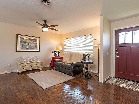 Great Location and Neighborhood - Updated Throughout and Meticulously Maintained! Interior - Professional Upgrades Spotless kitchen with live edge granite counters, hickory cabinets, stainless sink, dishwasher, plus breakfast area. Huge luxurious bath with custom cabinets, tile, and fixtures. Wood flooring and carpet throughout. Custom ceiling fans and upgraded lighting. Architectural panel-style doors with glass doorknobs and metal trim. Designer window treatment and color scheme to match your lifestyle. Energy Efficiency Newer HVAC (air conditioning & heat) with increased attic insulation plus vinyl, dual pane windows. Finished garage with insulated garage door and epoxy floor finish. Exterior Improvements Low maintenance Hardi Siding and vinyl fence gate (double) for paved side-yard access. The covered patio opens to a large fenced yard with plenty of room for a vegetable garden. Gutters and downspouts with integral drain lines to the street. Easy Escrow and Financing Broker assisted for sale by owner for a seamless transaction and easy financing. Ready to show almost anytime, call to schedule.