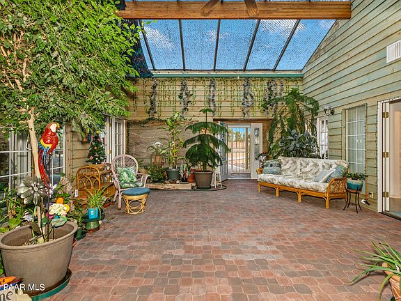 Welcome to the tranquil oasis nestled at the end of a serene street, where you'll discover an exquisite ranch-style home situated on a sprawling 5 acre lot in the desirable south end of Chino Valley. Step through the inviting front door and be captivated by the awe-inspiring atrium, adorned with a paver floor and a breathtaking ceiling with expansive windows, creating a haven for plant enthusiasts. Each room within exudes spaciousness that invites an abundance of natural light to permeate throughout. Experience the seamless flow and open concept living, allowing for effortless transitions from one room to another, creating an ideal space for hosting gatherings and creating cherished memories.