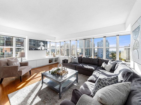 Prime South-West Corner unit. This bright & spacious 2-bedroom, 2-bath southwest-facing home offers nearly 1,000 sq ft of beautiful living space w/ views of the ocean, downtown skyline & Lions Gate Bridge. Located in The Sovereign, a rainscreened concrete building in the heart of Central Lonsdale. Enjoy an open-concept layout w/ generous living & dining areas and a large covered balcony perfect for watching the sunset. The kitchen is equipped w/ stainless steel appliances & plenty of storage. The primary bedroom is generous in size with a 3-piece ensuite. In-suite laundry, 1 secure parking stall & a storage locker. Just steps to parks, Whole Foods, the new Harry Jerome rec centre, restaurants & transit, this home offers incredible lifestyle and value. Open Sunday November 9 2-pm4pm.