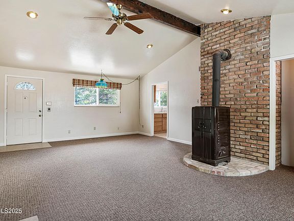 Welcome to your dream 3-bedroom, 2-bathroom ranch-style retreat! Perfectly positioned on just under an acre, this inviting 2,114 sq. ft. home has beautiful real hardwood flooring all offering s a combination of both tranquility and comfort . Arrive at your private circular driveway with separate convenient RV parking. Step onto the expansive trek deck and soak in breathtaking views of Washoe Lake and the majestic Sierra Nevada Mountains, including the iconic Slide Mountain. Enjoy a spacious 19' x 19' workshop with cabinets and shelves, plus a rolling worktable, ideal for a workspace or hobby enthusiasts. For equestrian or small animal lovers, there's an adjacent holding pen and arena for a horse corral. The beautifully landscaped grounds include: a fenced lawn with automatic sprinklers, is just 3-steps down from the deck, and a thriving orchard has plum, pear, apple, cherry, peach, and dwarf nectarine trees. Multiple Japanese Manking bush cherry plants line the southern and western borders, while four mature tomato bushes, squash, zucchini, butternut squash, and thornless blackberries provide a gardener's paradise. Every plant and tree is on a hassle-free automatic drip system, making outdoor living effortless. The garage has an enclosed laundry room, a separate utility room, and separate hobby room. Enhance your sustainable lifestyle with a dedicated, block walled compost area featuring a compost maker, plus a separate storage shed yard for all your tools and equipment. Most of the backyard is thoughtfully fenced and cross-fenced, offering security and flexibility for pets, gardening, or hobby farming.