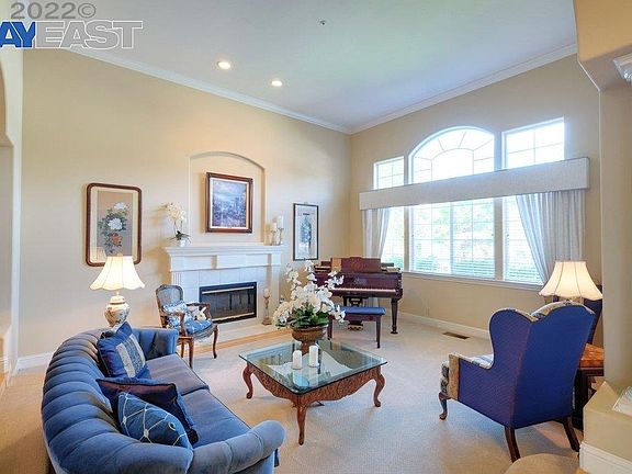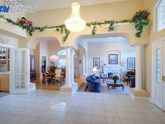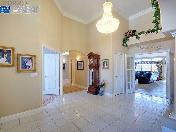 This custom single story contemporary home in Livermore is a must see! Enjoy 3,667 sq ft home featuring 4 bedrooms, 3 full baths, vaulted ceilings, crown molding, and skylights that bring natural light throughout the home. This open concept home is perfect for entertaining with a wonderful flow throughout the dining room, living room, family room, bar area, and kitchen. Enjoy design elements from pillars in the living room to french doors when entering the large kitchen and spacious family room. The kitchen is equipped with a double oven, gas stove top, eat-in area, desk nook, and plenty of cabinet and counter space. Relax in the master suite with a fireplace, sitting area, walk-in closet, private door to the backyard, and a bathroom with a clawfoot tub, 2 sinks, large shower with 2 shower heads, and heated shower floor. This wonderful Livermore home shows pride of ownership and is close to 84, wineries, shopping, and schools.