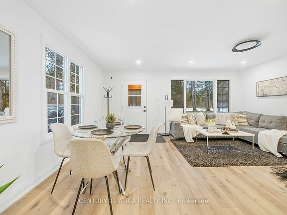 Welcome to 1555 Gill Rd. Nestled on a half acre lot in the desirable community of Midhurst, this fully renovated 3-bed, 2-bath home offers relaxing rural living, in a luxruious and comfortable setting. Every detail has been carefully elevated, including a brand-new kitchen, spa-like bathrooms, brand new flooring throughout, updated plumbing and light fixtures, new exterior siding with aluminum trim, and even a brand-new air conditioning and hot water tank. The home features a private enclosed veranda, and a walkout deck out back, perfect for entertaining, relaxing, and enjoying the natural surroundings. The home backs directly onto the serene Simcoe County Forest, allowing for endless nature hikes, exploration, and more. Located in family-friendly Midhurst, residents enjoy top-rated schools, outdoor activities like hiking and skiing, and proximity to Barries amenities. This move-in-ready property provides exceptional value at an affordable price dont miss out **EXTRAS** S/S Stove, Fridge, Dishwasher, and Hoodfan, along with a brand new washer and dryer. Not to mention brand new well pump, A/C, and a brand new owned hot water tank.