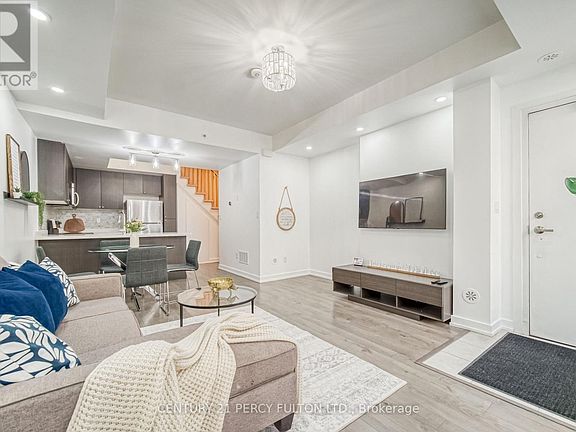 Modern town home in a prime Pickering location! This bright and stylish home features tall ceilings with new LED pot lights (2025), upgraded laminate flooring on the main level, and a sleek, open-concept kitchen with upgraded quartz counter tops (2025), stainless steel appliances (2019), ample storage, and a convenient breakfast bar. Enjoy two spacious bedrooms and 2.5 modern bathrooms in a thoughtfully designed layout. Ideally located just steps from parks and playgrounds, and only minutes to the GO Station, Highway 401, Pickering Town Centre, schools, and more. You are also within walking distance to the Pickering Recreation Centre and public library! Located in a pet-friendly community, this home offers the perfect blend of comfort, convenience, and contemporary living. (id:41440)