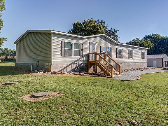 Fantastic opportunity to own a large home on an acre outside Ozark city limits. The property features a long paved driveway, brand new rock walk-way, plenty of elbow room between neighbors with a large open field behind, a two year old septic system, public water and a large shop with concrete floors and 220. The home was purchased from Clayton homes in 2020 and now rests on a permanent foundation. Inside offer a fantastic open floor plan with a split bedroom design, large living room, three full bathrooms, four spacious guest rooms, dedicated laundry room and a modern color palette throughout. The kitchen is something to dream about with a massive center island, black appliances, a large walk-in-pantry, tons of cabinet space and it opens up to the dining space and the living room. Finally, the master suite is a place for rest and relaxation boasting an expansive room, accent wall, dual vanity, walk-in shower, large soaking tub and a fantastic walk-in closet. This is the place you have been waiting to call home!