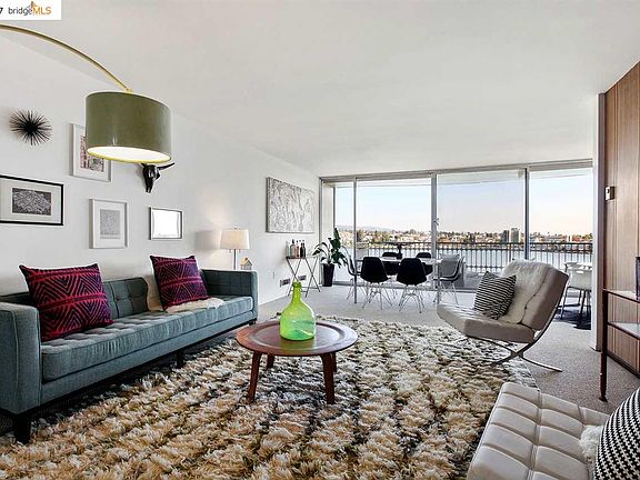 From sun up to sundown enjoy the best of Oakland. This spectacular 2 bed, 2 bath residence has dynamic views from every room - it captures spectacular sweeping views of Lake Merritt on one side and the vibrant Downtown Oakland skyline from the other side of the unit. Designed in 1967 by Michael Marx, an apprentice of Frank Loyd Wright: this building features solid concrete construction, discrete Mid-century details and seamless indoor-outdoor flow, evoking luxury apartment living from another time. The stunning floor-to-ceiling windows capture the breathtaking views as the living space spills out to your own private balcony overlooking Lake Merritt. The view is the headline but soon other appealing aspects come into focus. The attention to detail and exquisite updates make this the perfect turnkey residence.The bright, open floor plan allows you to enjoy a different vista from every room. The living room and dining room have easy flow for entertaining.