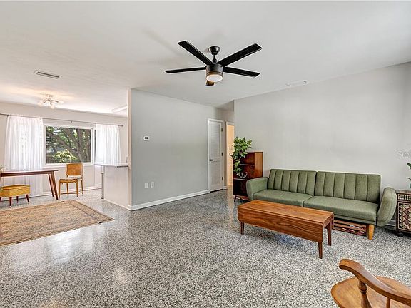 Location, Huge Yard, High Ceilings, what more could you want? Welcome home to 1555 Lakeview Rd in Clearwater! This open floor plan home is updated and move-in ready! Featuring 3 bedrooms, 2 bathrooms, 1 car garage, and large backyard. This home also offers a unique double-sided driveway, allowing easy access to this corner lot. As you enter you have a large living room that is open to the dining area and updated kitchen, which features whte cabinets, stainless steel appliances, and breakfast bar. My favorite feature would have to be the HUGE window in the kitchen overlooking the backyard. Take the hallway to the main bathroom and three bedrooms. The second full-size bathroom with a walk-in shower is located off the garage. Newer Windows. New AC. Refinished Terrazo Floors throughout. Conveniently located for a commuter, traveler, or beachgoer! Check it out today before it's gone!