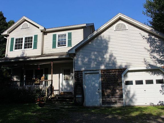 Well-appointed country colonial with Acacia hardwood floors throughout main floor and most of 2nd floor. Updated kitchen with new cabinets, Silestone countertops, and Jenn Air appliances. Sliding glass door off dining to back deck to enjoy the mountain view. Gas heat stoves on brick hearths in Living room and Family room for cozy winter nights. Master Bedroom with oak hardwood floors, large closet and private bath with step-in shower. Three other bedrooms and full bath with hall closet for linens. View of Laraway Mountain from the front covered porch. Attached garage, fenced in back yard and full basement, partially finished with laundry. Standing Seam metal roof only 2 years old, whole house air exchanger, Buderus furnace and water softener too.