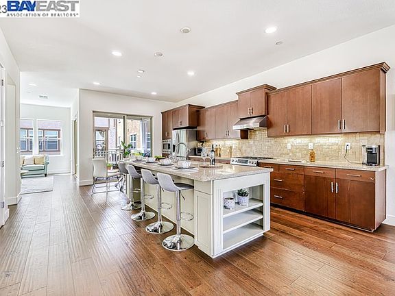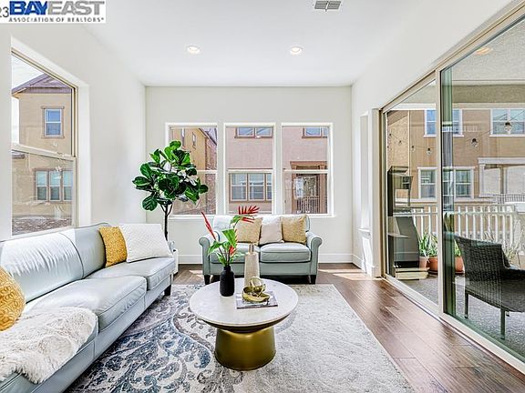 RARE OPPORTUNITY IN PLEASANTON! STUNNING NORTH EAST-FACING HOME IN HIGHLY DESIRABLE TOWNSHIP SQUARE, OFFERING TRUE RESORT STYLE LIVING! Presenting this beautiful 4 bedroom, 3.5 bath home with 2851 Sq. Ft. in an award-winning community.This modern and updated home is the epitome of luxury living. As you enter the home, you are greeted by a guest bedroom/full bath, and big closet space on the first level. On main level, the modern floor plan opens up to an elegant living room and gourmet kitchen featuring quartz countertops, SS appliances, walk-in pantry, a huge island, breakfast bar, and ample storage space, making it a dream for a home chef. With newer hardwood flooring throughout the home, tons of natural light all around, and the formal dining/family room leading to an airy balcony - perfect for entertaining. 3 spacious bedrooms, including master with a luxurious bath, and 2 additional bedrooms and a laundry room with tons of storage round out the rest of the house. Great built-in storage in the large 2-car garage. Amenities include The Clubhouse with Pool, Spa, Fitness center, Park, BBQ area and much more! Walk to beautiful Bernal community park, restaurants, and shopping. Minutes away from beautiful and charming downtown, Top Rated Pleasanton schools and highways 680 and 580.