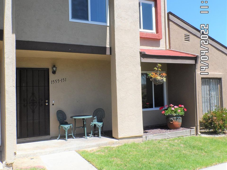 3BR, 1.5BA, 1200 sq.ft., carport (2 parking spaces), 2-story condo w/updated kitchen (new dishwasher, cabinets/counters, backsplash, ceiling light-fan, water heater) and new flooring throughout. Freshly painted, dual-pane energy efficient windows and washer/dryer hookups in unit. Sliding 8-foot glass door to pergola-type covered private patio, 2-door exterior storage closet. Primary room (13.5x10) w/ceiling-light fan, second room (14x10) and third room (11x9). Condo and pool nestled in tree-lined, green-space community walking distance to park w/playground area and picnic tables under shade. Military or working person(s), financially responsible, all-the-way-around clean, non-smoking and who will care with pride of residency. Month-to-month rental agreement. Security deposit is $2,500. After seeing condo and completing application, proof of credit/employment required. Rental application info to be verified for every person 18 years of age or older who will live at condo. Consider obtaining credit score through creditkarma.com. or other reputable org.