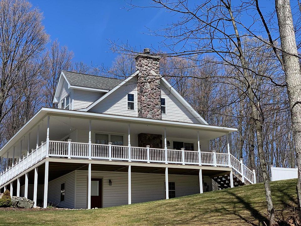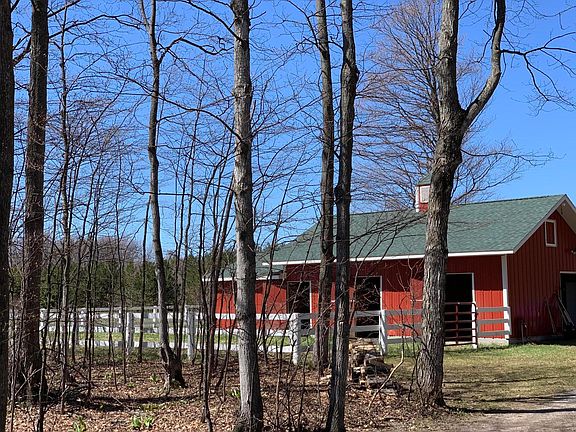 SELDOM AVAILABLE, IMPOSSIBLE TO FORGET. Spectacular custom built 3 plus bedroom home with finished walk-out lower level on 47.53 acres of mature hardwoods. Gourmet kitchen boasts of recently refinished hardwood floors, island with bar seating and commercial stainless appliances. 17' 10'' x 31' living room with stone wood burning fireplace, 22' x 18' master bedroom, 6 panel oak doors and extensive decking, F/A furnace and Country Hearth Wood Furnace, paved driveway and 2.5 car garage. 24' x 46' HORSE BARN with 3 hardwood box stalls, concrete floor and a 12' x 32' tractor bay. Barn has storage space for 400 square bales of hay and there is approximately 2 acres of fenced pasture. This home is a nature lovers paradise with trails throughout the property.