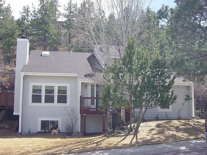 Tucked in the foothills, enjoy the natural surroundings & abundant wildlife. This 3BR/4BA/2C, 2-story home is located on nearly 1/2 acre at the end of a cul-de-sac in the Mount Woodmen Estates community & will be your indoor/outdoor entertaining haven. Open & bright floor plan features a spacious great room w/vaulted ceilings, ceiling fan & cozy gas fireplace. You will appreciate the sun filled dining room, built-in eating nook, counter bar & updated kitchen boasting granite countertops, 3 lazy Susan's, stove w/new gas line, "ss" dishwasher, side-by-side & beverage refrigerators. The kitchen opens to the great room, or walk out to the inviting deck w/Fire Pit, Hot Tub & serenity overlook. A convenient 1/2 bath completes the main level. Upstairs you will find the private master bedroom w/large closet, adjoining bathroom, skylight, built-in linen cabinet & glass block double-headed shower! The upper level includes another bath & oversized bedroom w/French doors, built-in bookshelves, roomy closet & ceiling fan. The finished basement provides great entertaining space & features a rec room w/garden level windows, TV, dry bar cabinets, a bedroom & bathroom. Escape to your private outdoor retreat and explore the wooded paths beyond the deck, play in the front yard, choose to relax on the deck next to the gas fire pit, or sink into the bubbles of your Hot Tub. Enjoy your updated outdoor lighting, Invisi-Fence, Rain bird sprinkler system, for tranquil surroundings year round. Additional features include a new roof, finished garage w/new door, sensor light & insulation over the garage, security system, upgraded energy efficient windows, water softener, upright freezer, wind proof pet door. Academy School District 20. This is Colorado living at its best and a home that cannot be missed! Brokered And Advertised By: The Platinum Group, REALTORS Listing Agent: Shelley Pelle