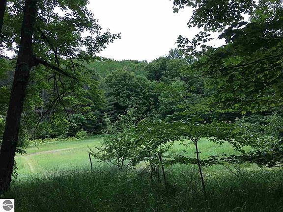 5 acres, only 5 minutes to Honor, 11 miles - 20 minutes to Peterson Beach, 15 - 30 minute drive to most locations in Sleeping Bear Park. Lot is very private with hill blocking road. Has driveway with gate, septic system, deep well and 200 amp outdoor electric service. All working. 10` x 10` storage building. Nice campsite with utiilties for a camper hook-up. Campsite over looks a natural meadow. Property is covered with mature Sugar Maple trees. Estimated there are enough trees for at least 300+ taps if interested in maple syrup. Ideal for a 3/16 gravity, sap tubing set-up. There is a State public kayak access to the upper Platte River just about 1500` down road from the driveway. Forest floor is covered with ferns and raspberries. Beautiful lot, very private, seems bigger than 5 acres.