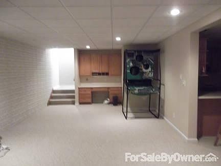 Lovely roomy home with low maintenance exterior! Four bedroom home with 9' ceilings located on nice 1+ acre corner lot. Kitchen is open to breakfast area and large family room with fireplace. Main floor also includes formal living room and dining room. Spacious master suite features walk-in closet, whirlpool tub and separate shower. Carl Fox custom cabinets throughout! New roof installed in 2012. Finished basement features approximately 1,000 sq. ft. of additional living space and includes a large combination family/game room, a second full kitchen and a half bath. Another large room is suitable for a workout room or home office. Unfinished area provides 350 sq. ft of storage space.Additional property info: http://www.forsalebyowner.com/listing/4-bed-Single-Family-home-for-sale-by-owner-1555-N-Meadows-Ct-47203/23930538?provider_id=28079
