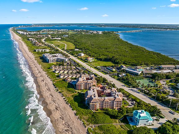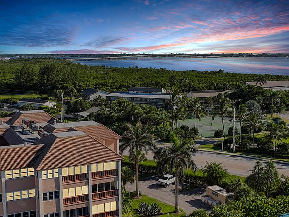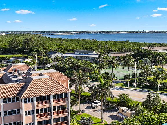 Gorgeous 4th floor condo on the ocean side of A1A with views from the Jensen to Stuart Causeway Bridges and Waterways. 4th floor units have vaulted ceilings in the living area. Enclosed porch for year round use. Condo has been updated throughout with large square tiles on a diagonal, updated closet doors, kitchen and vanities. And....a 25' dock is included in the sale!
