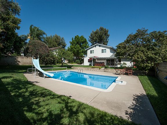 Move in ready pool home in North Upland neighborhood. This attractive two story home features 4 Bedrooms and 2 baths with master suite located downstairs. Living room has a fireplace and wood beamed vaulted ceilings. The kitchen offers granite counters and a view of the large back yard and pool. The flooring is ceramic tile in kitchen and dining area, carpet and laminate wood in living room and bedrooms. Other features include central air & heat, ceiling fans throughout and double pane windows. The lot is 11,100 SQ-FT, with in ground swimming pool & slide. Covered patio includes above ground spa. The two car garage has lots of overhead storage with drop stair access. The backyard has RV parking and block walls.