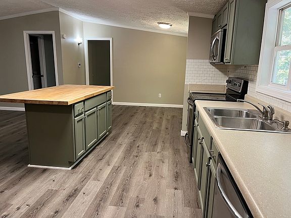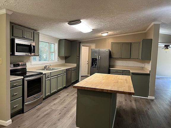 Move-in-Ready with a creek!! This 3 bed, 2 bath home is waiting for you!! Great open floor plan, plenty of kitchen cabinets, a beautiful butcher block island/bar, Fresh paint, new flooring (no carpet), covered front porch, plenty of room for a garden, outside storage and only 20 minuets to restaurants and shopping.