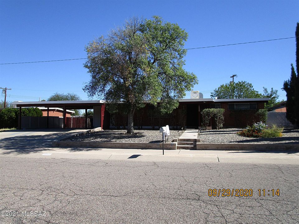 Classic ranch style brick home at a popular Eastside location! 3 brm/2 bath with 3 carport and. Large size back yard with citrus trees, room for a pool, 2 sheds stay, brand new carpet in all 3 bedrooms, including refrigerator, washer-dryer, recently new AC unit, dual pane windows, skylight in kitchen, laundry room is off kitchen, wrought iron bars & doors for security. Evap cooler & water softener in ''as-is conditions. Convenient to shopping, bus lines & school...