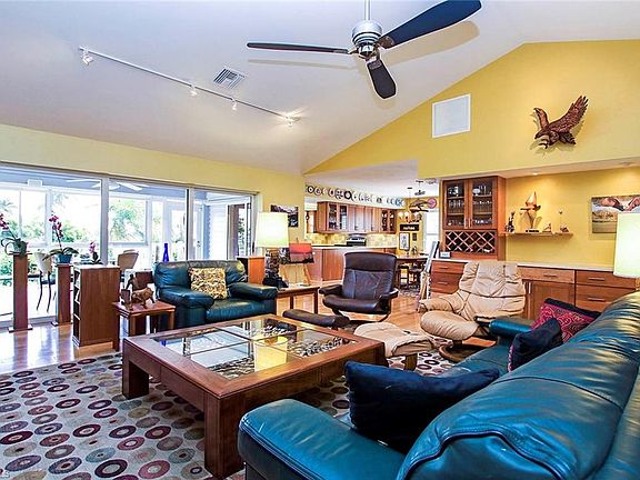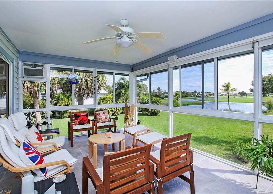 Wonderful home with wonderful views! This meticulously maintained 3 bedroom, 2 bathroom home overlooks a pond and the Dunes Golf course. The enclosed lanai expands the living room and takes in the beautiful and tranquil views. The yard and recently resurfaced pool are private and inviting. The split bedroom floor plan is perfect for the family or guests with plenty of room for gathering in the vaulted ceiling living room. The kitchen has plenty of cabinet space and counter space.
