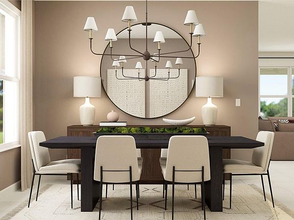 Offering desirable features including a study and formal dining room, this new two-story home is designed to accommodate modern lifestyles. An inviting open-concept floorplan offers seamless entertaining and multitasking with convenient access to a spacious covered lanai. A study and dining room can be found of the foyer, with a private secondary bedroom nestled into a private corner at the back of the home. Upstairs, four additional bedrooms surround a versatile loft, including the owner's suite with a spa-inspired bathroom and walk-in closet.Prices, dimensions and features may vary and are subject to change. Photos are for illustrative purposes only.