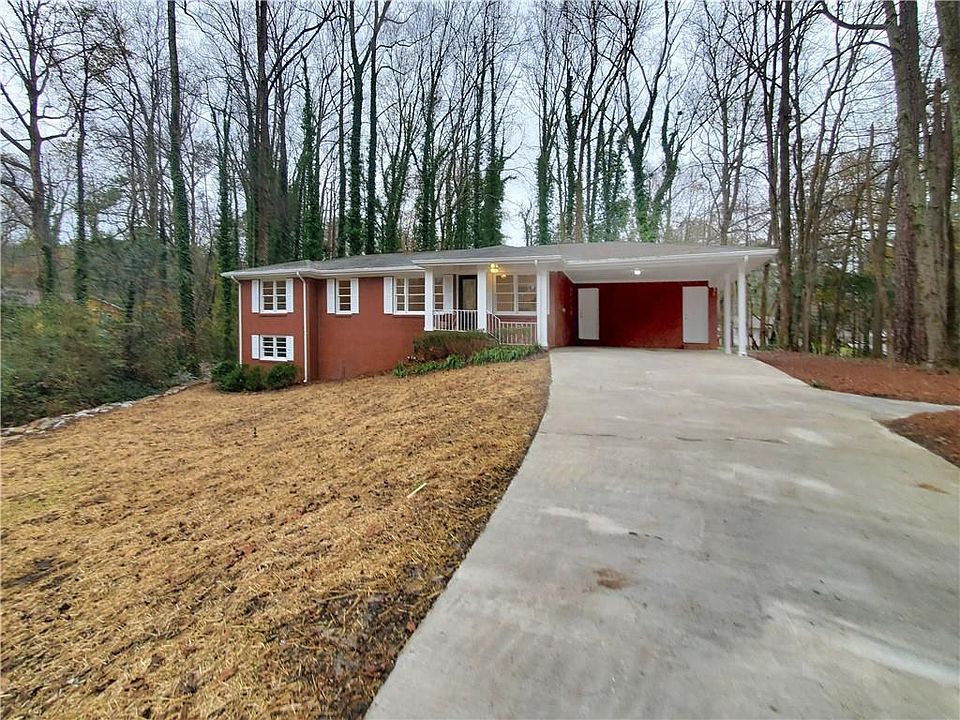 Newly renovated 3 bedroom, 2 bath ranch on a full basement. Situated on a end street in Mableton, this home is in the highly sought-after Pebblebrook High School. This beautifully updated home is close to everything including Thornton Rd, Maxhim Rd, I-285, Hartsfield Airport and so much shopping, entertainment, and restaurants. This home sits back from the road and has a large front yard with level driveway and covered front porch. There is a 2 car carport that can easily be enclosed. There is a small storage room in the carport and access to the kitchen with 1 step. This home has many stunning features including recessed lights, designer lighting, luxury laminate flooring, neutral paint, nickel and chrome hardware, and so much more! The gorgeous kitchen has beautiful white shaker cabinets with granite counters and stainless steel appliances. There are tons of cabinets and a breakfast bar with tall cabinet-pantries. The laundry room is just off the kitchen along with a keeping room with a fireplace and access to the back porch. The living area is large and lined with windows that floods the room with so much natural light and a beautiful wood door with a beveled window feature. There is a large master with double closets and a full master bath. The master bath has a shower and a beautiful vanity with updated lighting. There are 2 additional spacious bedrooms that share a full hall bathroom. The bathroom has a tub/shower, a gorgeouse vanity, and a set of open linen shelves. The full basement has access to the outside and can easily be finished. There is a very private backyard stone porch with a small grassy courtyard. A must-see!