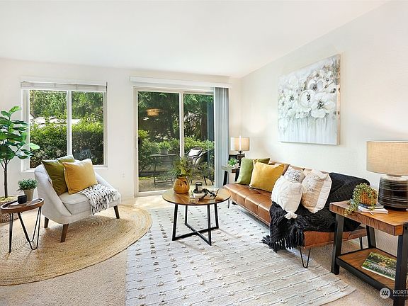 This conveniently located main-floor condo invites you in to explore all it has to offer! Enter into the intimate dining room flowing seamlessly into the cozy living room. The kitchen is filled with plenty of storage. The spacious main bedroom is complete with a built-in closet system. This condo puts its square footage to good use, with an abundance of storage throughout, a full bathroom, & an in-unit laundry room. Enjoy your private patio and all the PNW has to offer, with Lake Washington beaches moments from your front door. Nearby, you will also find many local parks, including the coveted Cougar Mountain, which is just 15 minutes away! You will love the convenience of having two reserved parking spaces and close access to I-405.