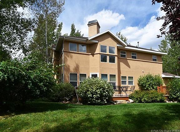 This 3 bedroom +den/office/4th bedroom in the Snyder's Mill residence is perched along a seasonal stream and boasts and boasts all new stucco and new Bosch appliances in the kitchen. (Double wall oven) The main level features stone & hardwood flooring and a see-through fireplace in the living area. Gracious curved stairway leads to the 3 upstairs bedrooms, including Master Suite with stargazing balcony which takes in the views of Park City ski area ("Canyons Village"). Oversized new TREX deck off the back includes private hot tub. Garage parking include two separate bays (2/1) The front porch features a private covered nook from which to enjoy the sunset views. During Winter; Roof Heat Tape helps keeps sidewalks clear of water drippings that may cause ICE.