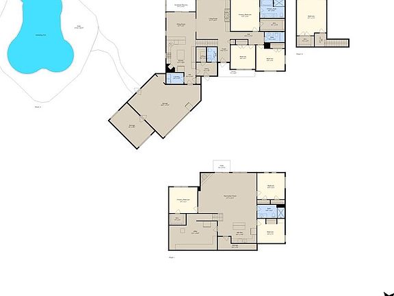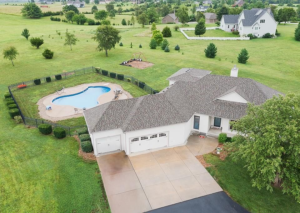 LUXURY 1.5 STORY ESTATE WITH POOL AND MULTI-GENERATIONAL LIVING ON 3.5 ACRES! Located in the desirable Bear Lake community, this stunning home offers 6+ bedrooms, a finished walkout basement, and exceptional spaces for extended families. The first floor features a show-stopping kitchen with granite counters, island, stainless built-in appliances, and tile floors, all opening to a grand great room with vaulted ceilings, fireplace, and built-ins. The main-level master suite includes a large walk-in closet and spa-like bath with double vanities, soaking tub, and oversized shower. Upstairs, you’ll find a large private bedroom with its own walk-in closet. The walkout basement is designed as a second living area with a full kitchen, family room with corner fireplace, and three additional bedrooms. Outside, enjoy the inground pool—perfect for entertaining. The 3rd garage bay is currently converted to a bonus bedroom. This property offers space for a large family, style, and flexibility in a peaceful, sought-after location!