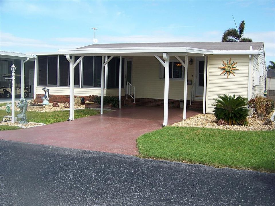 CHECK THIS BEAUTY OUT!!! REDUCED $50,100 FOR QUICK SALE!!! HURRY AND TAKE A LOOK BEFORE ITS GONE, ITS AMAZING!! Welcome to Beautiful, gated, Burnt Store Colony, the "Mercedes Benz" of community living at its BEST where the residents are very friendly, the amenities go on & on (including storage for RV's, boats & more, a hurricane shelter & tool pavilion). Your fur babies are welcome & the park is very well maintained. Take a look at this stunning home located on the largest pond in the park! This one has it all!!! 2 bedrooms, 2 baths, 3 sheds and 2 extremely nice all-weather Florida rooms.... front and back of home. There is definitely Seller's pride in ownership here & this home is certainly very well cared for! Have your morning coffee on the HUGE 15 x 28 newer built all weather Florida room that has A/C & heat, 2 lighted ceiling fans, acrylic sliding windows/doors and gaze at the soothing pond & nice wildlife OR plan a great party because this room is big enough to dance in!!!OR sit out on the southern exposure front all weather lanai & chat with the neighbors passing by. Now, with 3 sheds.... storage is NOT an issue. The Sellers even have one shed dedicated to just Christmas decorations & other holiday items!!!Some of the MANY updates & new items include in 2023: Comfort Cover roof over, Complete A/C unit, Hot water heater, Carport with extra supports. The home has been replumbed using CPVC so NO gray pipe here, floors are wood-like laminate & tile throughout, newer windows throughout, window treatments, accordion hurricane shutters all the way around, epoxy driveway, brick skirting with "critter screen", concrete curbing, kitchen sinks, counter tops, cabinets doors & all faucets in home (Moen)are newer, 6 panel doors & MUCH MORE!!!!! No matter what, this home offers much room for entertainment and storage and that is HARD to find!!! There is so much more to say about this lovely home, but I have a better idea, come take a look, you'll be so glad you did!!!! Call for a showing today, it's just that simple!