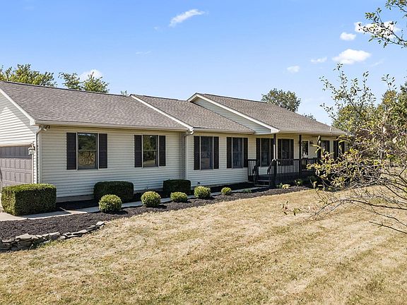 Welcome to your chance at a slice of heaven. This 3 bed 2 full bath ranch sits on just over 6.5 acres and is located minutes from the highway. The galley kitchen offers stone countertops and dark stainless appliances. The primary suite offers a full bathroom and a walk-in closet. The additional two bedrooms are large with plenty of closet space. The living room is open to the dining area and consists of beautiful, hardwood floors. Outside, you will find a 30' x 48' pole barn with concrete floors and a 30' x 40' horse barn with 3 stalls. Don't miss your chance at this wonderful home!