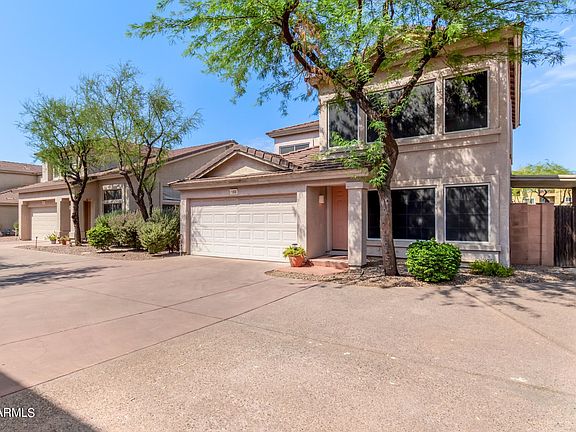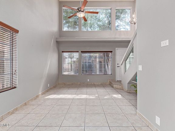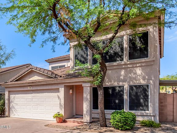 Fantastic floor plan with dramatic vaulted ceilings in living area! 2 master suites (1 upstairs & 1 down) and a spacious 3rd bedroom all w/lg. closets! Large open eat in kitchen overlooking a lovely low maintenance private yard w/artificial grass, raised flower beds & a relaxing water feature. Both bathrooms just updated with new tile shower surrounds. Tile thru out the home, inside laundry & attached garage. This is a beautiful & highly desirable community w/lovely grounds, community pool & spa. HOA maintains front yard. Conveniently located near freeway, shopping, restaurants, top rated schools, top rated golf courses, McDowell Mountains/ hiking & so much more! Welcome home!!