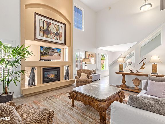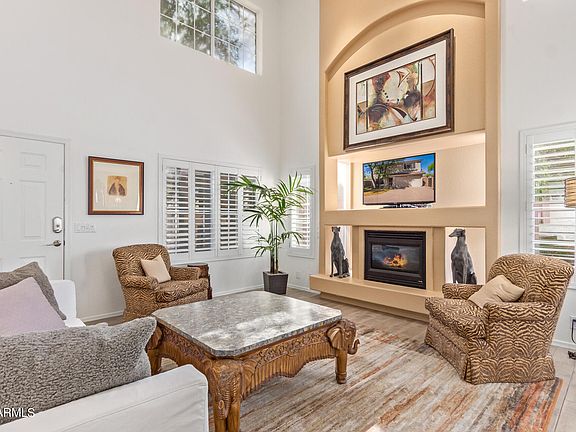 You will be welcomed by dramatic cathedral ceilings & a spacious open floor plan w/gas fireplace and highly upgraded w/plantation shutters thru out! Beautifully remodeled kitchen w//quartz, designer backsplash & SS appliances! Dining opens out to lovely private yard w/expansive paver patio, artificial grass & tranquil fountain to enjoy morning sun & shady afternoons! 1st level guest bath & laundry. Master suite & spacious guest bedrooms upstairs along w/desk alcove. Primary suite w/walk in closet & stunning remodeled bath w/free standing tub! This home is right out of a magazine! Near shopping, restaurants, freeway, top rated schools & minutes to McDowell Mtns/hiking!