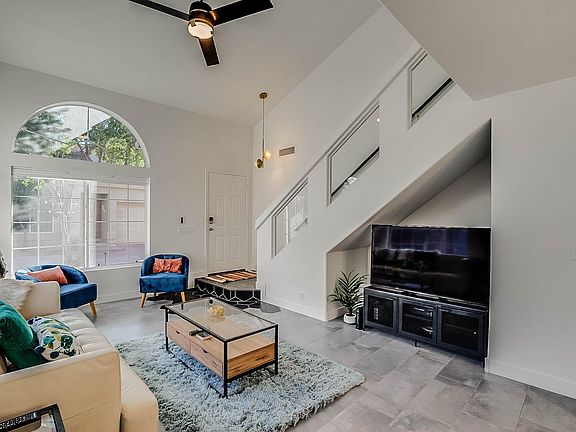This 2 story very spacious 3 bed/ 2.5 bath home just had an extensive remodel where every single inch of the home has been transformed into a one of a kind mid century modern masterpiece! This stunning home includes a private 2 car gargae and is in a safe and quiet gated neighborhood with community resort style pool within minutes from the TPC golf course and WestWorld of Scottsdale. This remodeled beauty includes all brand new floors( upstairs, on the staircase, and downstairs), a one of a kind unique gourmet kitchen with custom shaker cabinets, new quartz countertops, fresh paint, new fans, new bathroom vanities, LED light up mirrors in both upstairs bathrooms, custom walk in master shower, new floating bathroom vanities, custom art & decor, beautiful brand new furniture and decor to make this home your perfect home away from home! Enjoy watching televison in the living room, or any of the bedrooms upstairs as all the rooms come stocked with a TV! Entertain in the backyard with your own BBQ, relax on the hammock, play bags, or a quick walk away is the fantastic community resort style pool. Enjoy our stress free check-in with our modern keyless entry system. Your custom entry code will be released prior to your arrival. Don't worry about parking -- we have a two car garage with guest parking as well in our gated community! Need to do laundry and do not feel like finding a laundromat? We have brand a new high-efficiency washer and dryer for your convenience. The house is fully furnished with all brand new furniture. We are open to lease lengths. Price will vary depending on the length of the lease. Utilities depend on the length of the lease.