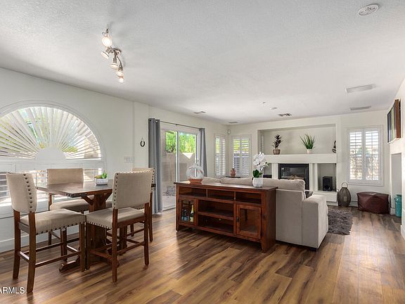 Perfectly located, light, bright & updated home in the gated community of The Village at Frank Lloyd Wright! Fantastic floor plan with two en-suite bedrooms plus a third room and half bathroom for guests! The primary master suite has a huge walk-in closet and master bath retreat with separate shower/tub and two sinks. Your open kitchen has stainless steel appliances, and the living space features a gas fireplace. Plus, 2 car garage with tons of storage space. A private covered patio and wrap around low maintenance backyard with turf and lovely shade tree. The community has a heated community pool and spa. Very convenient to everything that Scottsdale has to offer!