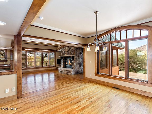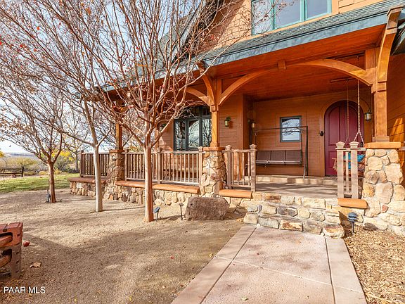 Within the serene beauty of rural Arizona, this one-of-a-kind custom home on 144 pristine acres offers the perfect blend of privacy, luxury, and nature. Designed in the highly sought-after Maple Forest Plan featured in Architectural Digest, this home showcases exceptional Arts and Crafts detailing throughout, creating a space that is both sophisticated and warm. The expansive wide-open mountain views allow you to wake up to the sound of nature, surrounded by the gentle presence of wildlife including deer, quail, javelina, even the occasional elk. The home's thoughtful design features custom finishes, highlighting the colors of the surrounding earth and sky, creating a timeless aesthetic that is both functional and beautiful.
