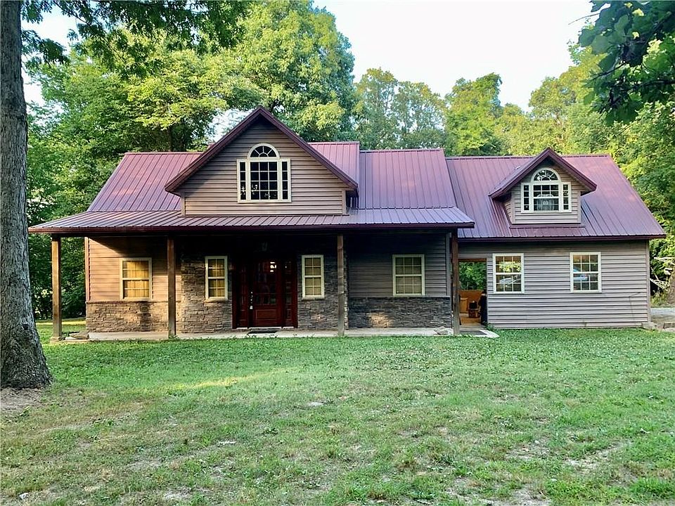 Secluded home a great fit for any person who enjoys the luxuries of the outdoors, hunting and creek access from your own property, minutes from the kayak park, on top of a hill surrounded by mature trees, this is a beautiful setting and home! There are 2 levels with loft area to include 4 bedrooms (space being utilized for closet is not "customary" closet space could be considered 3 bedrooms), loft/room with laundry/extra storage upstairs and additional room/bathroom. Downstairs includes an open living area with kitchen/eating area, lots of cabinet space, split floor plan on the bottom with 2 bedrooms and bathroom. A rustic home, it could also be someone's weekender or Air BNB opportunity. Lovely deck to enjoy the large backyard and watch deer, bobcats, along with other animals. Don't let this one pass you; make a showing appointment today. Drive is somewhat steep, may want to drive slow uphill (shouldn't have any issues).