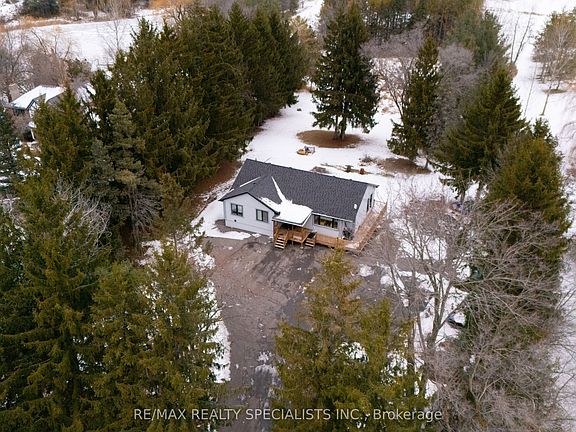 Welcome to this beautifully upgraded bungalow set on a rare 2.45-acre private lot in desirable Rural Caledon. Offering exceptional space, privacy, and flexibility, this home features approximately $300,000 in quality upgrades throughout. The main level boasts a bright living room with a bay window and an electric fireplace, a formal dining area with pot lights, and a renovated kitchen with stainless steel KitchenAid appliances, porcelain flooring, and a breakfast area. Three spacious bedrooms are located on the main floor, including a primary retreat with his and hers closets and a 5-piece ensuite. The finished walk-out basement with separate entrance offers a large great room, second full kitchen, two additional bedrooms, and multiple bathrooms-ideal for extended family or in-law potential. Carpet-free interior, central air, propane forced-air heating, and abundant natural light throughout.Enjoy expansive outdoor space, ravine and treed views. A rare opportunity to own a move-in-ready estate property with flexible possession in a peaceful country setting, yet within easy reach of Caledon amenities.