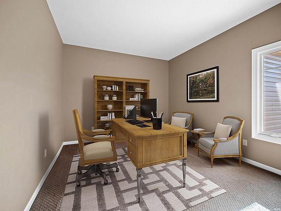 Welcome summer on your private back patio with scenic views of a wooded glen and wildlife. Take the evening chill off by the beautiful stone slab custom fire pit accented with boulders. Step inside this Granite Ridge built home and see the timeless, unique floor plan with great space to entertain and a kitchen sure to please the resident chef. Note the "Costco" size walk-in pantry, the craftsmanship of the Grabill Cabinets, the convenient breakfast bar, and gas range. Also note the stone-front fireplace flanked by custom shelves on both sides in the great room along with triple windows to the back yard. Main floor primary suite features a door to the private patio wired for a hot tub and outdoor shower. The suite also has great views of every season and a tile, walk-in shower with dual heads. The main floor office is perfect for work-from-home days. Upstairs boasts three generous bedrooms with walk-in closets and two full bathrooms. The 4th bedroom could also serve as a flex room or family center. Be sure to walk into the 3rd car garage to see the 12x10 workshop area in the back. Few homes offer this much storage and garage space. Come see the value soon. Located in a convenient location with easy access to everywhere. Hot tub is negotiable. Photos have been digitally staged with furniture but accurately reflect the structure.