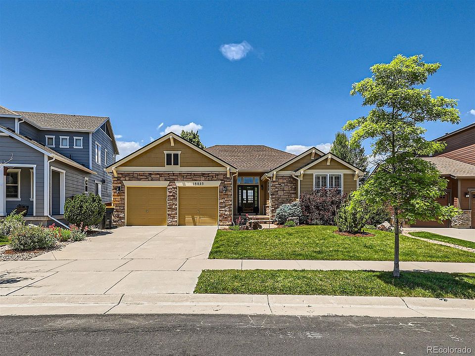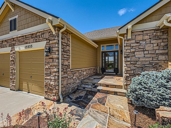 Former model home with high end finishes and designer touches ready for its new owner! Open concept main level living with plenty of natural light located on a private lot backing to open space. From the moment you arrive, the meticulous landscaping and beautiful flagstone front porch will make a memorable first impression. And as you enter, you will be warmly greeted by a spacious open floor plan with high ceilings & lots of natural light. The welcoming entry gives way to the heart of the home, the large gourmet eat in kitchen which features high-end espresso cabinetry, a big center island, beveled quartz counters, custom tile backslash, gas range & double ovens which will surely please the chef in the family! Adjacent to the well equipped kitchen is a spacious family room with vaulted ceilings, big picture windows, & a 3 sided fireplace to enjoy on those cold Colorado nights. It is the perfect spot for gathering with family & friends. At the end of the day, retire to the private primary suite which offers a big bay window, high ceilings, a large walk in closet & a lovely 5 piece en-suite bath. At the other end of the house are 2 good size guest bedrooms flanked by a large secondary bathroom which is the perfect set up for kids or guests. As an added bonus, there is a well appointed formal dining area that could serve as a great home office if preferred. The grand finale is the big laundry room just off the oversized garage with utility sink & lots of built in storage; washer/dryer included. Full unfinished basement to make your own & increase your future equity by doubling your square footage. The backyard is the highlight of the home offering private tranquility & gorgeous sunset views. The custom flagstone patio is an entertainer's dream boasting a built in outdoor kitchen including a double slab granite counter, a 42” Alfresco gas grill, an XL Big Green Egg, a natural gas fire pit + stone sitting wall, a new remote control awning, & low voltage lighting system.