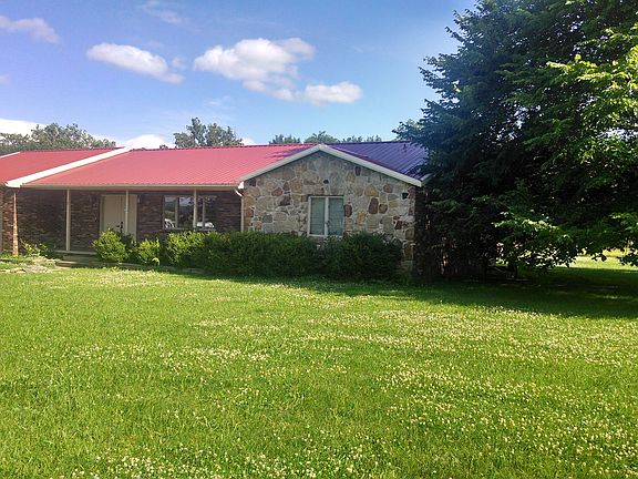 Lovely one level ranch style home ready for you. The brick and stone siding and the metal roof are low maintenance. Trees border the front yard and there is shade for the house. The back of the 15 acres has a small creek and nice timber.