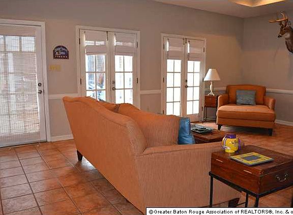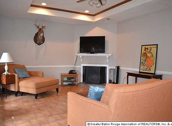 Lovely Home in Quaint Neighborhood. Home features a front courtyard with french doors across the front of the home. Large living room with fireplace and open to the dining area. Kitchen has granite tile countertops and stainless steel appliances. Ceramic tile and laminate wood floors throughout the house and no carpet. Living room, dining room and master bedroom have tray ceilings with crown molding. Large covered patio in back, fenced yard, and storage shed will remain. Nicely landscaped. Roof is less than 3 years old. Perfect for an investor or first-time homebuyer.