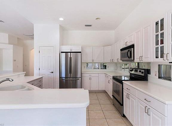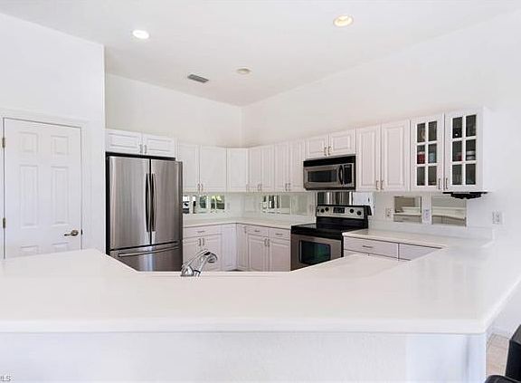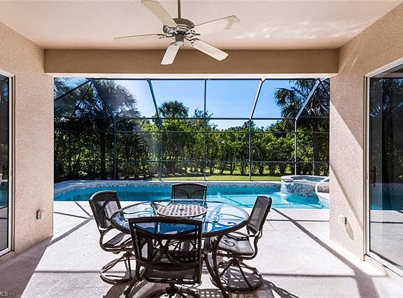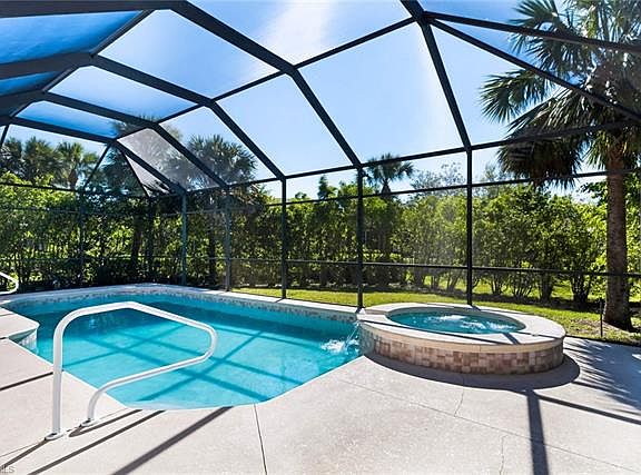 1YR Home Warranty offered. LOWEST PRICE POOL HOME BY 30K IN DELASOL! Perfectly situated on one of the largest private lots in Delasol. The hedged-in side yard gives the buyer flexibility to do an addition or create the perfect outdoor oasis. You will appreciate the location being only steps away from the community center all the while nestled on a quite dead-end street. Features include 3 bedrooms, 2 full bath and open concept kitchen and family room. The master suite offers a large walk-in closet and a master bath with dual vanities, a separate soaking tub and walk-in shower. The light and bright family room opens to the kitchen and breakfast nook overlooking an oversized screened lanai, which features a pool and spa, ideal for entertaining. Delasol has only 271 single family homes on 147 acres, 62 of which are set aside for preserves, lakes and green spaces. The residents enjoy wonderful amenities, including a community pool and spa, state-of-the-art fitness room, clubhouse, 2 lite tennis courts, basketball and play area. The highly sought-after gated community is situated close to all that Naples has to offer; world class beaches, shopping and dining. LOW FEES!
