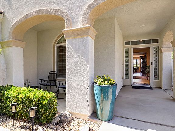 space is attached to the kitchen and offers impressive views. The kitchen itself is quite big, complete with granite counters, cinnamon cabinets, an island with convenient bar seating, stainless appliances include steel oven, microwave, dishwasher, ample storage, and built-in recessed lighting. The main suite is expansive, featuring two walk-in closets, a ceiling fan, and enough room for large pieces of furniture. This suite also boasts a double sink and a full-sized bathtub, along with a private shower with a custom glass door. 2-car attached garage with epoxy flooring and shelving, a lovely private backyard to relax and enjoy mountain views morning and night. Additional luxury is added with the Alumawood patio cover, an awning on the side of the house, a spa, fruit trees and herb garden. HOA amenities include clubhouses, pools and spas, walking trails, restaurant, theater, pickleball & tennis courts and more. This property offers a variety of amenities and a central location close to shopping, entertainment venues, and major highways. For more information or to schedule a private showing of this beautiful home, please feel free to contact us at your convenience.