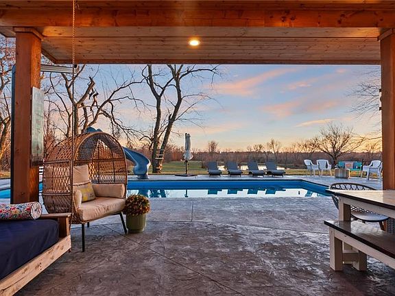 Stunning ranch-style estate home with approx. 4700sf of living area featuring 4 spacious bedrooms on the main floor and multiple non-conforming rooms downstairs. The country kitchen is a chef’s delight, equipped with abundant cabinets, attic fan, and breathtaking views of the 10ac and beautiful ¾ acre pond. Adjacent to the kitchen, the formal dining room is perfect for hosting. Mudroom off the kitchen includes a ½ bath and entry to driveway and garage. The generously sized living room boasts a skylight and floor-to-ceiling windows, providing an abundance of natural light. A built-in bookcase shelf with storage adds style. Three large bedrooms plus master with full bath in the hallway. The master bedroom includes access to the backyard area and a full bath. Descend to the lower level, where you’ll find approx. 2,000 square feet of finished space, including a non-conforming bedroom and full bathroom, along with two additional rooms used as a craft room and storage. A massive rec. room is perfect for games and gathering: the pool table and games stay! Two sets of stairs from the basement to the garage and basement to kitchen. Step outside to your personal paradise, featuring a 3-year-old inground pool with a lounge deck, auto cover, gas htr, a large slide. The back covered patio includes smart lights and ceiling fans, also just a few years old. This property is on blacktop roads, making. The 30x30 shop and 16x22 outbuilding has concrete flooring and power. The septic lateral system is 3 yrs old and comes with maintenance records. New landscaping around the home. The home features new carpet on stairs/downstairs, and 21 brand new interior doors. The property is mostly fenced. With two HVAC units (approx. 6 yrs old) ensuring year-round comfort, this home is a perfect retreat, but so close to amenities. This home is owned by the listing agent.