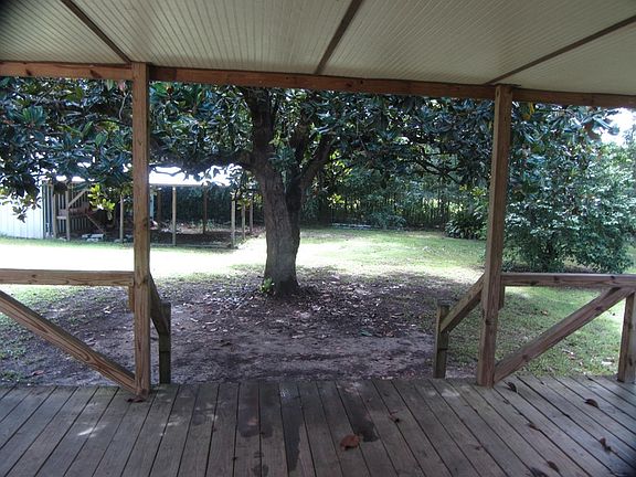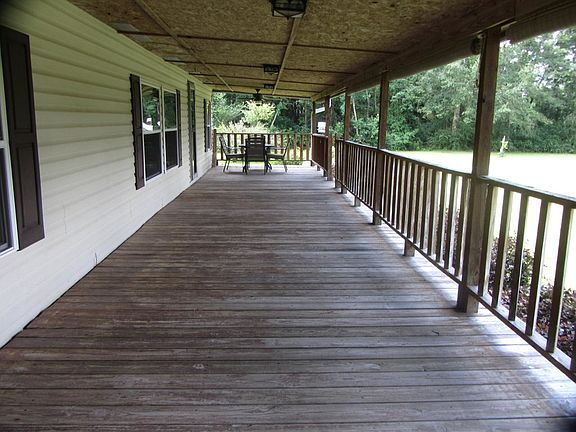 AWESOME!! Seriously. The "bones" of this home is a double wide mobile home built in 1995. It has been completely remodeled with sheetrock, new flooring, new kitchen complete with granite counter tops, custom metal roof, new siding, upgraded fixtures,....remodeled bathrooms.....brick chainwall skirting......and huge covered front porch and covered back deck. Views of mature oaks and magnolias. Lots of outbuildings for shops or storage. There is an older mobile on the property with add ons that is given NO VALUE....it can be torn down...BUT has restoration potential.