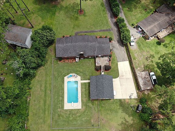 Property backs up to a shared neighborhood pond well stocked with fish. Saltwater Pool Wired shop sits on concrete slab. Well maintained yard with mature plants. 1.3 well manicured acres Storage over carport and attic space. Kitchen has granite countertops and stainless steel appliances. Bonus room with walk in closet. Master bedroom has en-suite. Brick wood burning fireplace. Tile and LVP flooring Open floor concept with large living area. Additional room off kitchen can be used as formal dining, play room, office, or nursery. Great family home in a wonderful neighborhood.