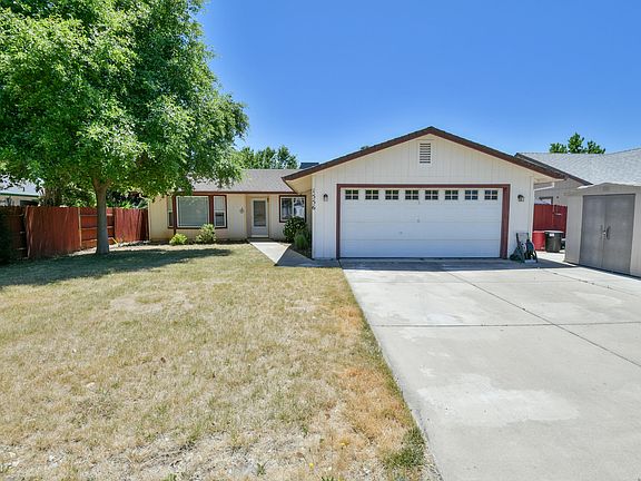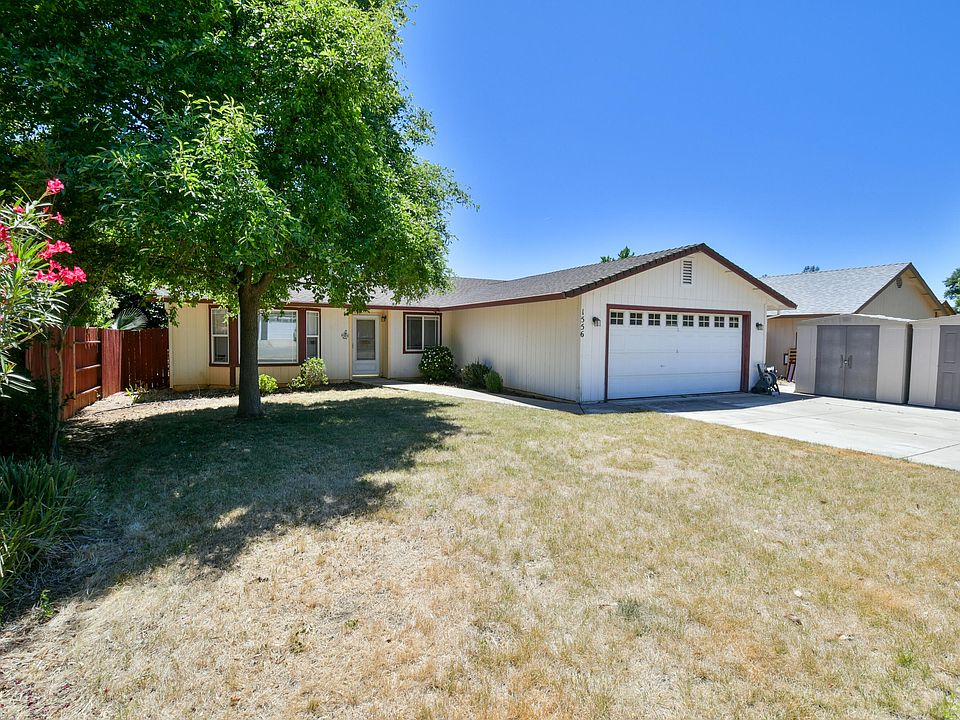 Cute and convenient! Charming single-owner home on a quiet street centrally located in SE Redding, just minutes from schools and shopping. This 3 bed, 2 bath home is just over 1,350 sq ft and has a 2-car attached garage plus plenty of space on the side for storage/RV/boat? Newer vinyl plank flooring in living spaces, kitchen and hall. The primary bedroom has a full bath attached, plus a walk-in closet. Sliding glass doors off of the dining room and primary bedroom lead to a back patio that is covered by a nice pergola. In the low-maintenance backyard, you will find a well-established cherry tree that is overflowing with delicious, ripe cherries, as well as a hot-tub that stays! Interior just needs some fresh paint & flooring in bedrooms. Seller is offering $5k credit towards flooring!