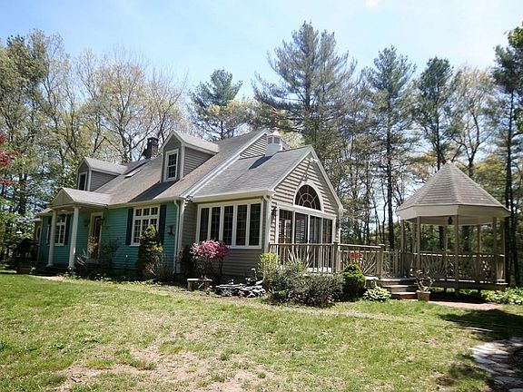 Quintessential New England! all updated and renovated Classic Cape. Offers open floor plan for today's busy lifestyle. Gorgeous hardwoods on the 1st level, Beautiful eat-in kitchen with plenty of space and storage, including center island, dining area, and kitchen fireplace. The first floor has an oversized master bedroom, beautiful bath with separate shower and tub and 1st-floor laundry and 2nd floor-2 large bedrooms, and another full bath, Front to back Living room with another working fireplace, sunroom, sliders to huge deck with gazebo makes it easy to entertain or just sit and enjoy your morning coffee as you take in the tranquility of the picturesque yard where nature abounds. Minutes to 24 and 195. Call today.
